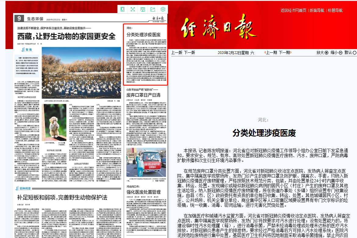 本报讯 记者陈发明报道:河北省应对新冠肺炎疫情工作领导小组办公室日前下发紧急通知,要求安全、规范、有序、高效处置新冠肺炎疫情医疗废物、污水、废弃口罩,严防病毒扩散传播和次生衍生环境污染事件。 在规范废弃口罩分类处置方面,河北省对新冠肺炎收治定点医院、发热病人筛查定点医院、集中隔离医学观察场所、发热门诊产生的废弃口罩及防护服、隔离衣、手套,均纳入新冠肺炎疫情医疗废物管理,严格按照技术规范分类、包装,并由处置单位24小时内集中收集、转运、处置。发现确诊或疑似新冠肺炎病例的居民小区(村庄)产生的废弃口罩及其他生活垃圾,纳入新冠肺炎疫情医疗废物管理,所在街道办事处(乡镇)组织设置专门收集设施,由县(市、区)政府委托有资质的单位每日收集、转运、处置。其他城镇居民小区、村庄、公共场所、机关企事业单位、商业集中区等人口密集区域要设置具有专门文字标识的垃圾桶,统一收集、消毒、密闭运输,进行无害化焚烧处置。 在加强医疗和城镇污水监管方面,河北省对新冠肺炎疫情收治定点医院、发热病人筛查定点医院、集中隔离医学观察场所、发热门诊将按要求对污水进行处理;没有处置能力的,将建设临时性污水处理罐(箱),进行消毒杀菌,严禁未经消毒处理或处理未达标的医疗污水排放。对新冠肺炎患者产生的排泄物,要求经过严格消毒后方可排入污水处理系统;医院污泥按危险废物进行集中处置,基层医疗卫生机构将因地制宜采取消毒杀菌措施,禁止向农田灌溉渠道排放医疗污水;城镇污水处理厂将采取消毒措施,确保出水余氯、粪大肠菌群数指标达标。 |
