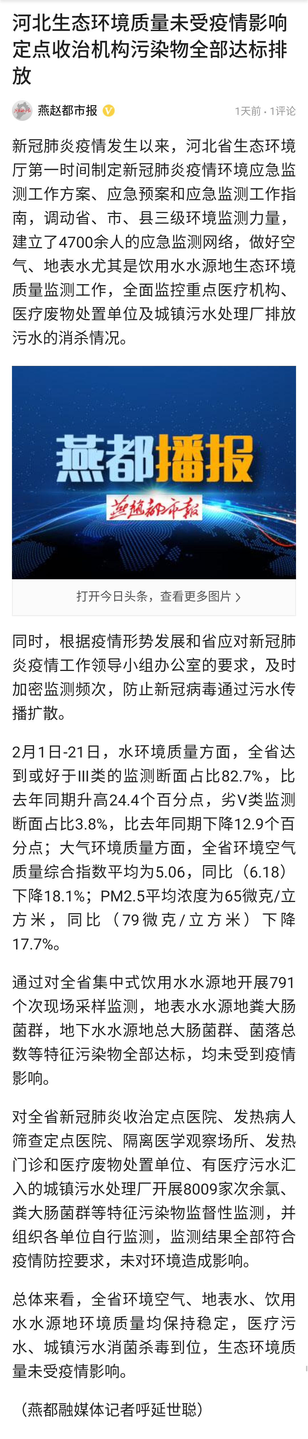 燕赵都市报:河北91直播质量未受疫情影响 定点收治机构污染物全部达