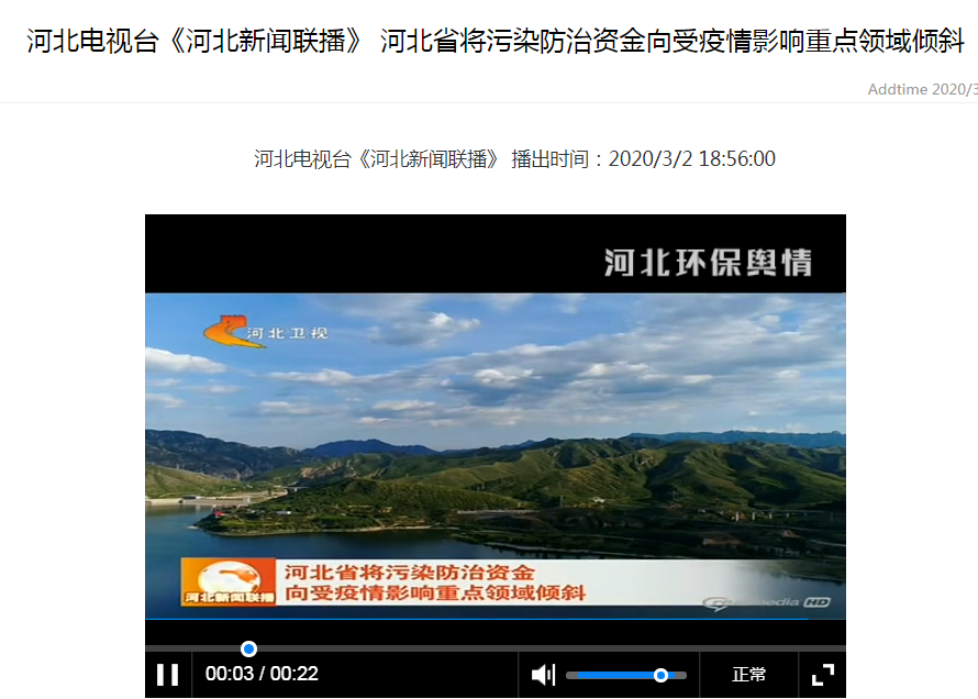 河北电视台《河北新闻联播》:河北省将污染防治资金向受疫情影响重点领域倾斜