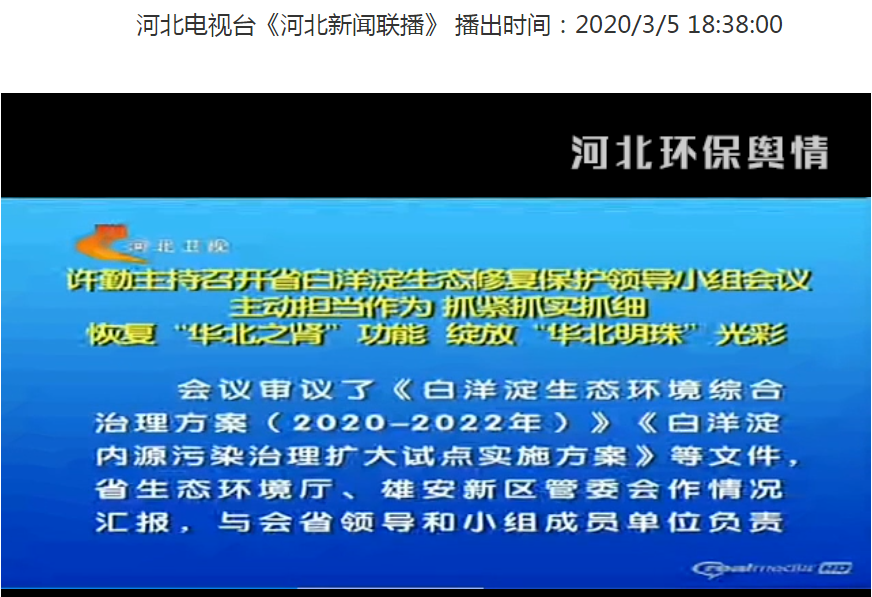 河北电视台《河北新闻联播》:许勤主持召开省白洋淀生态修复保护领导小组会议主动担当作为 抓紧抓实抓细 恢复“华北之肾”功能 绽放“华北明珠”光彩 来源:省91直播宣传教育中心 时间:2020-03-06