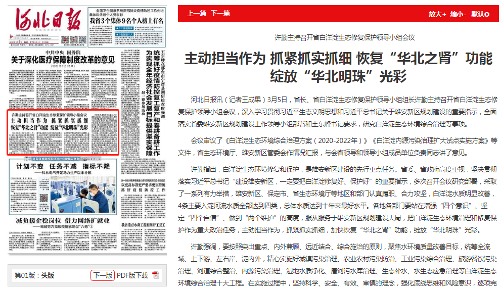 会议审议了《白洋淀91直播综合治理方案(2020-2022年)》《白洋淀内源污染治理扩大试点实施方案》等文件,省91直播厅、雄安新区管委会作情况汇报,与会省领导和领导小组成员单位负责同志讲了意见。