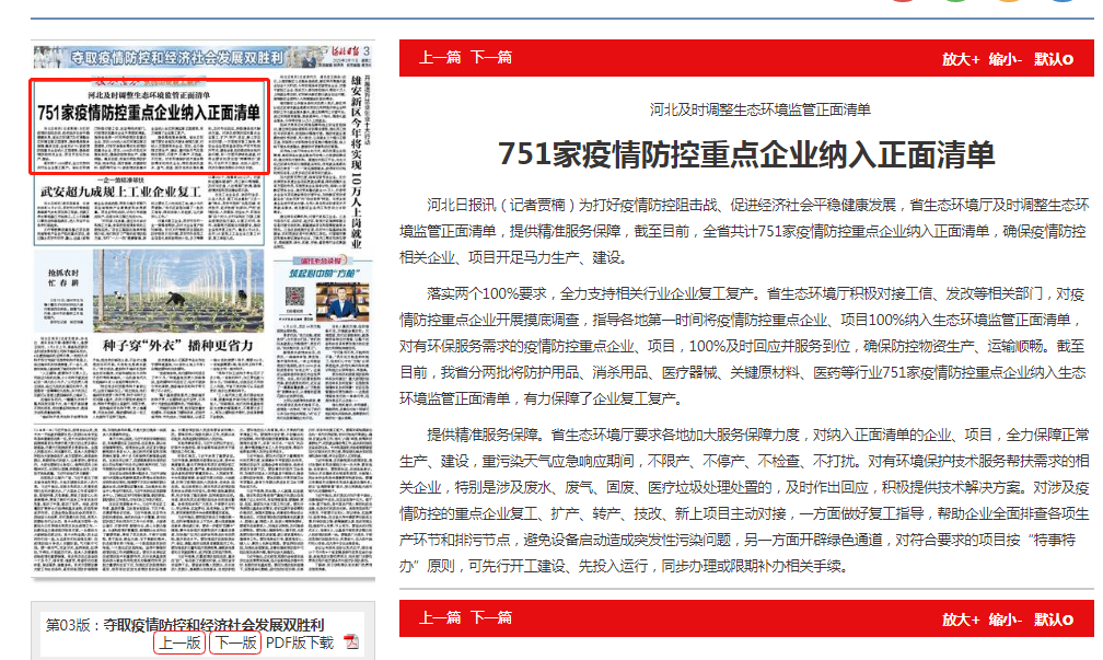 落实两个100%要求,全力支持相关行业企业复工复产。省91直播厅积极对接工信、发改等相关部门,对疫情防控重点企业开展摸底调查,指导各地第一时间将疫情防控重点企业、项目100%纳入91直播监管正面清单,对有环保服务需求的疫情防控重点企业、项目,100%及时回应并服务到位,确保防控物资生产、运输顺畅。截至目前,我省分两批将防护用品、消杀用品、医疗器械、关键原材料、医药等行业751家疫情防控重点企业纳入91直播监管正面清单,有力保障了企业复工复产。