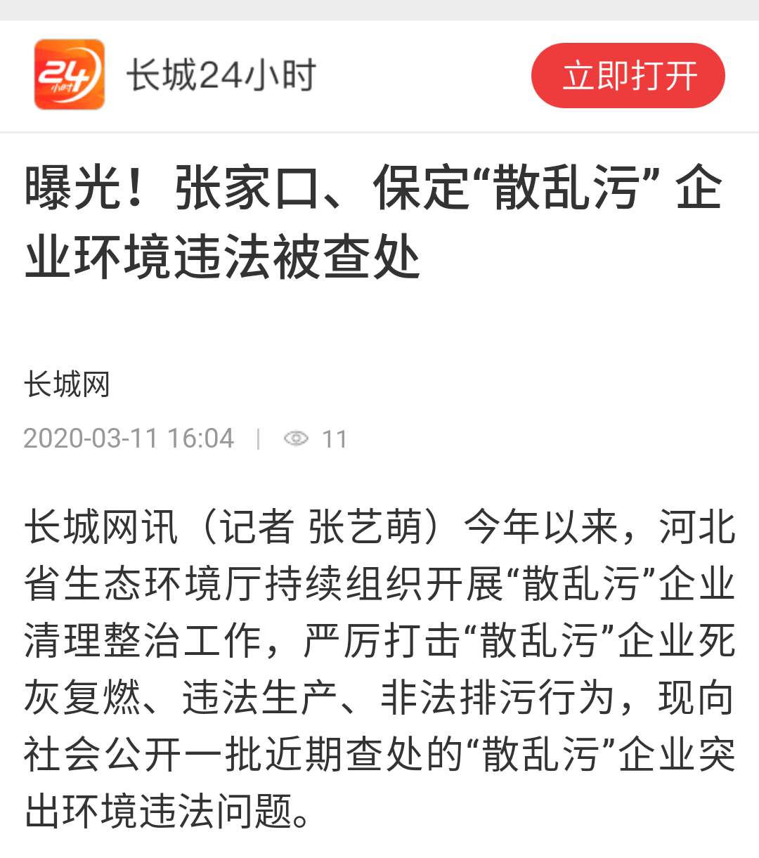 长城网:曝光!张家口、保定“散乱污” 企业环境违法被查处