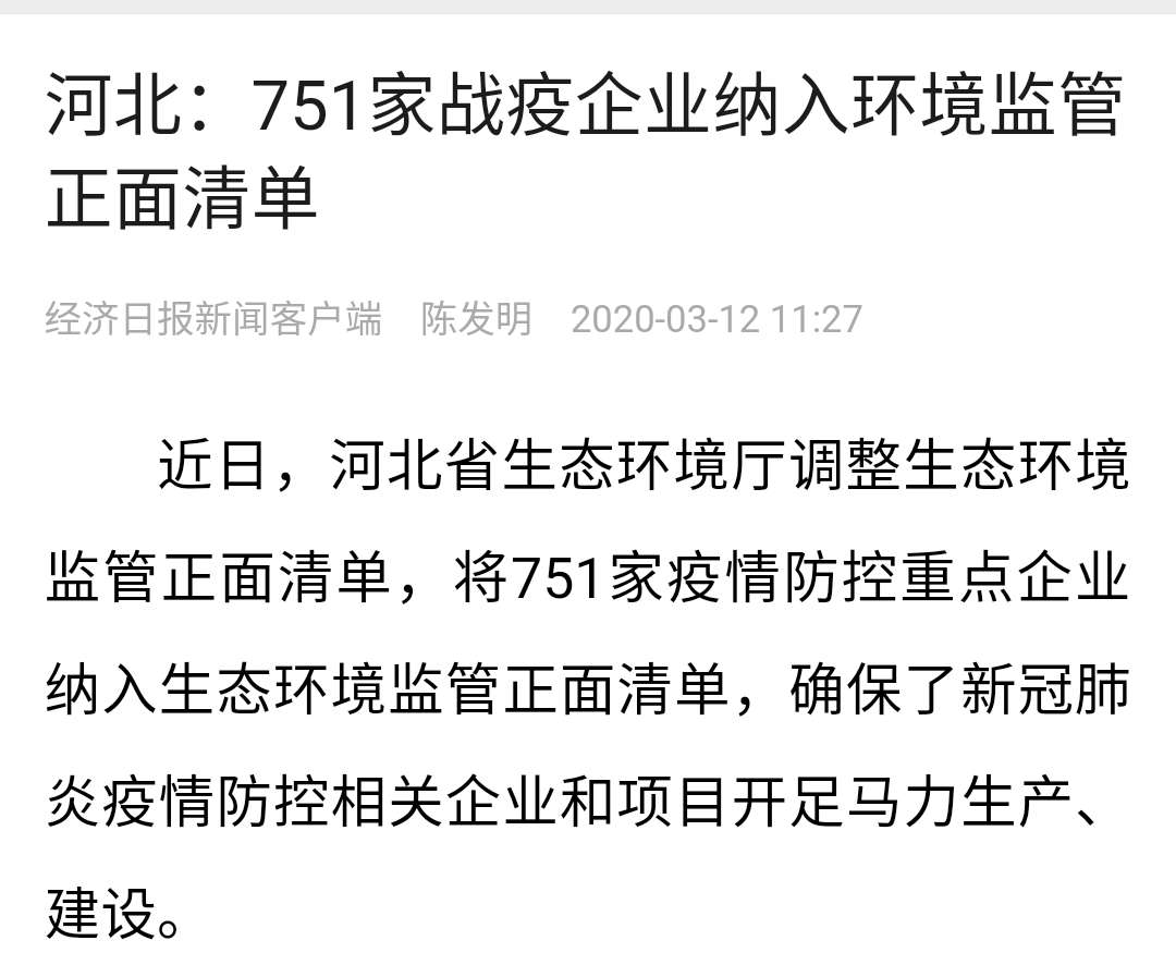 经济日报新闻客户端: 河北:751家战疫企业纳入环境监管正面清单