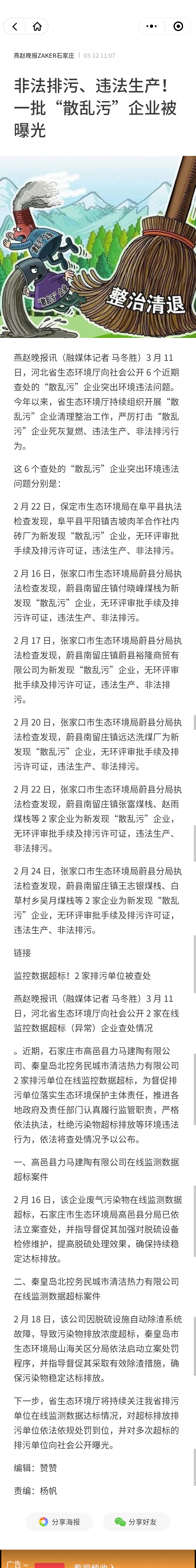 燕赵晚报:非法排污、违法生产!一批“散乱污”企业被曝光