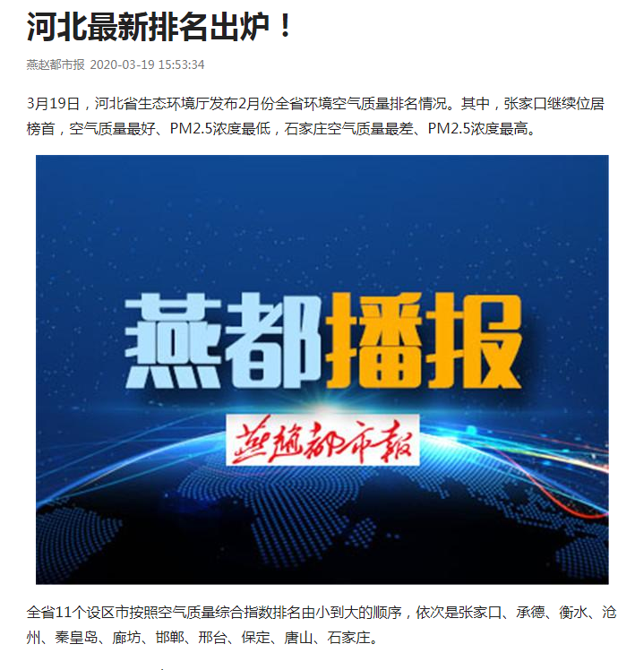 3月19日,91直播-国产视频-麻豆传媒视频 发布2月份全省环境空气质量排名情况。其中,张家口继续位居榜首,空气质量最好、PM2.5浓度最低,石家庄空气质量最差、PM2.5浓度最高。