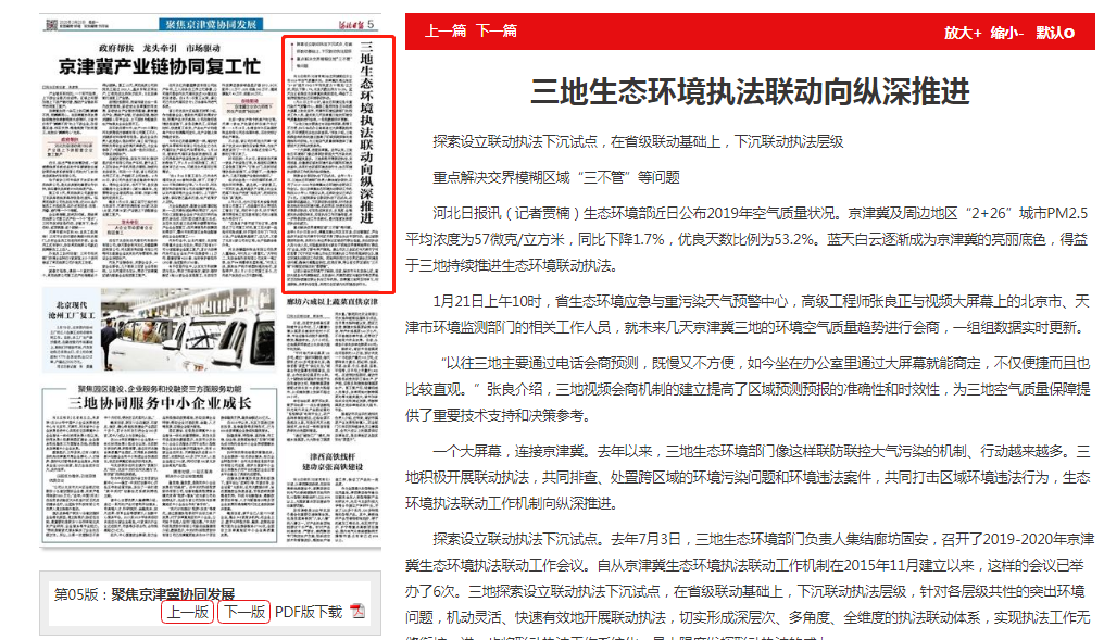 一个大屏幕,连接京津冀。去年以来,三地91直播部门像这样联防联控大气污染的机制、行动越来越多。三地积极开展联动执法,共同排查、处置跨区域的环境污染问题和环境违法案件,共同打击区域环境违法行为,91直播执法联动工作机制向纵深推进。