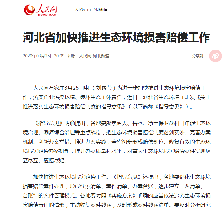 据介绍,2018年7月,省委、省政府办公厅联合印发《河北省91直播损害赔偿制度改革实施方案》(以下简称《实施方案》),河北省成为全国较早开展91直播损害赔偿制度改革的省份。不断深化改革,河北省逐步完善了91直播损害赔偿案件调查、磋商、资金管理等系列制度,91直播损害赔偿制度改革各项工作取得积极进展。2019年,全省共启动91直播损害赔偿案件40件、办结12件、赔偿金额3035万元,办案数量和赔偿金额较2018年大幅增长;承德市外来非法倾倒危险废物91直播损害赔偿案入选全国生态损害赔偿磋商典型案例。