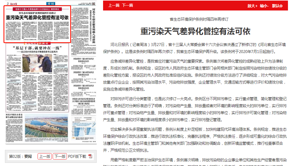 应急减排差异化管控,是我省应对重污染天气的重要探索。条例首次将差异化管控的成熟经验上升为法律制度,形成长效机制。条例规定,设区的市人民政府91直播主管部门会同相关部门制定按照污染物排放绩效分级的差别化管控方案,报设区的市人民政府批准后组织实施。条例还对绩效分级方法进行了详细规定,对大气污染物排放重点行业企业,按照其污染治理水平、污染物排放强度、企业管理水平、交通运输方式等进行评价和绩效分级,实施应急减排差异化管控。