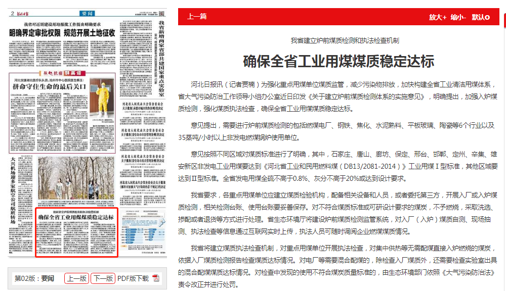 意见按照不同区域对煤质标准进行了明确,其中,石家庄、唐山、廊坊、保定、邢台、邯郸、定州、辛集、雄安新区非发电工业用煤要达到《河北省工业和民用燃料煤(DB13/2081-2014)》工业用煤Ⅰ型标准,其他区域要达到Ⅱ型标准。全省发电用煤全硫不高于0.8%、灰分不高于20%或达到设计要求。