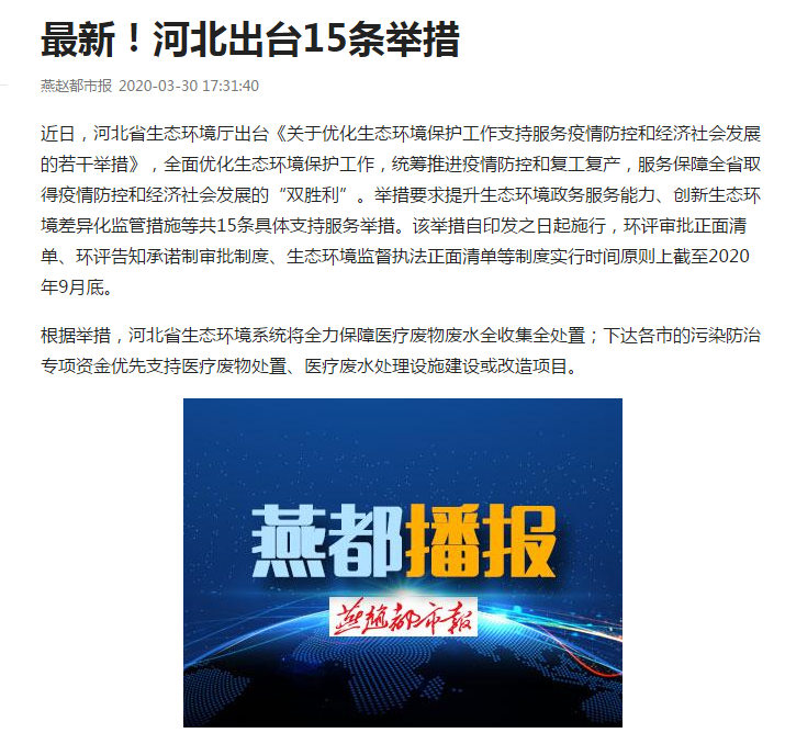 根据举措,河北省91直播系统将全力保障医疗废物废水全收集全处置;下达各市的污染防治专项资金优先支持医疗废物处置、医疗废水处理设施建设或改造项目。