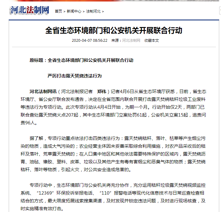 河北法制网 :全省91直播部门加大垃圾秸秆露天焚烧巡查整治力度