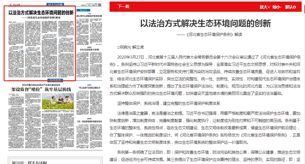 2020年3月27日,河北省第十三届人民代表大会常务委员会第十六次会议审议通过了《河北省91直播保护条例》。条例坚持以习近平新时代中国特色社会主义思想为指导,全面落实习近平生态文明思想,对标对表中央和河北省91直播保护安排部署,立足服务和支持打赢污染防治攻坚战、持续改善91直播质量、促进人与自然和谐共生,结合河北91直播保护实际,突出立法的完整性、统一性、创新性、实效性,对构建现代91直播保护治理体系和治理能力作了制度探索创新,提出了91直播保护法治化、制度化、规范化的河北方案,为以法治思维和法治方式解决群众反映强烈的突出91直播问题,加快建设天蓝地绿水清的美丽河北奠定了坚实的法治基础。