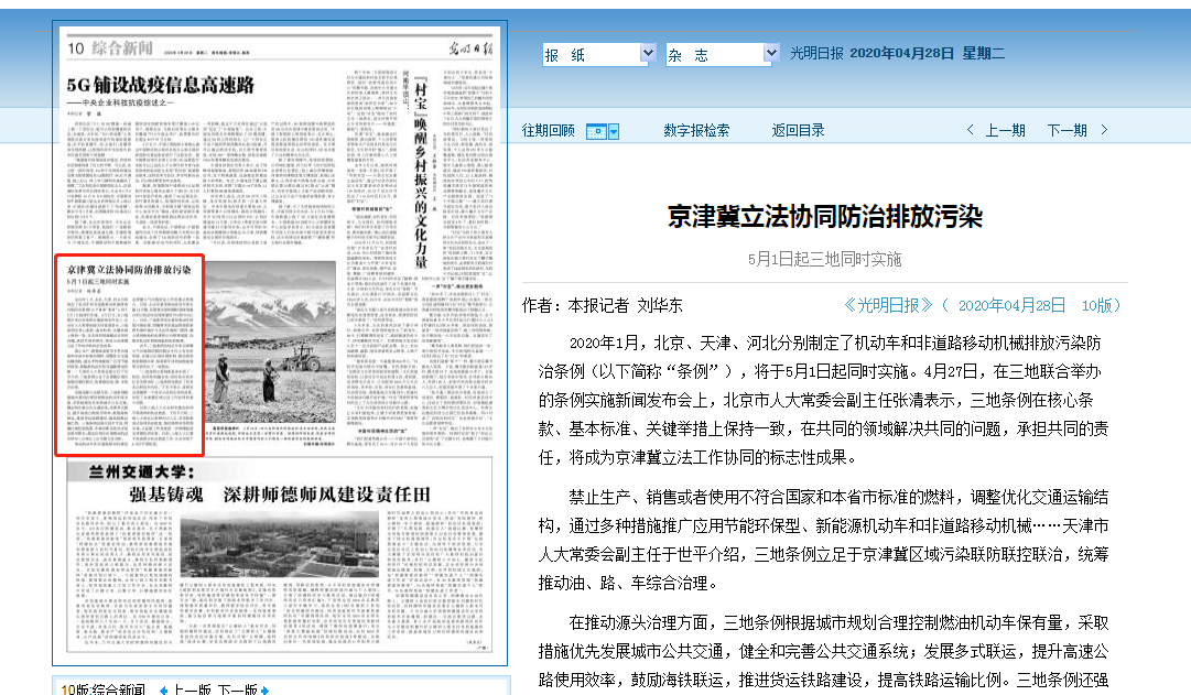 2020年1月,北京、天津、河北分别制定了机动车和非道路移动机械排放污染防治条例(以下简称“条例”),将于5月1日起同时实施。4月27日,在三地联合举办的条例实施新闻发布会上,北京市人大常委会副主任张清表示,三地条例在核心条款、基本标准、关键举措上保持一致,在共同的领域解决共同的问题,承担共同的责任,将成为京津冀立法工作协同的标志性成果。