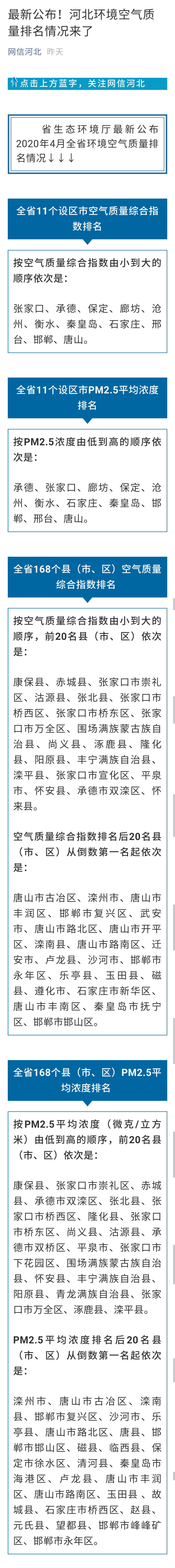 网信河北:最新公布!河北环境空气质量排名情况来了