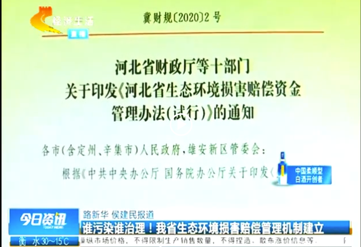 河北电视台《今日资讯》:谁污染谁治理!我省91直播损害赔偿管理机制建立