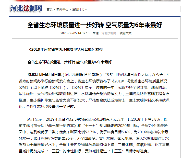 河北法制网:全省91直播质量进一步好转 空气质量为6年来最好