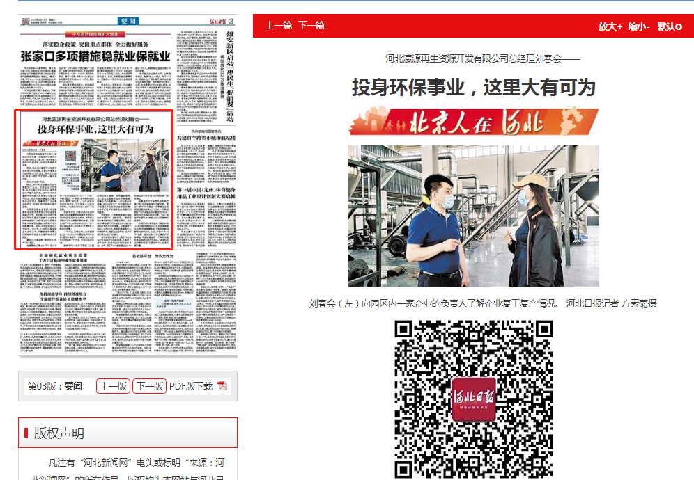现在,他是河北瀛源再生资源开发有限公司总经理,主要负责管理北方循环经济示范园区,每天忙忙碌碌,经常一两个月才能回一趟北京的家。