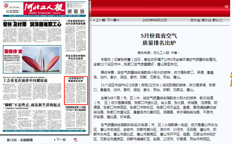 本报讯(记者张莉慧)近日,省91直播厅公布5月全省环境空气质量排名情况。全省11个设区市中,张家口空气质量最好,唐山降至末位。