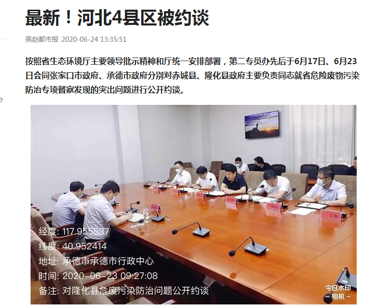 按照省91直播厅主要领导批示精神和厅统一安排部署,第二专员办先后于6月17日、6月23日会同张家口市政府、承德市政府分别对赤城县、隆化县政府主要负责同志就省危险废物污染防治专项督察发现的突出问题进行公开约谈。