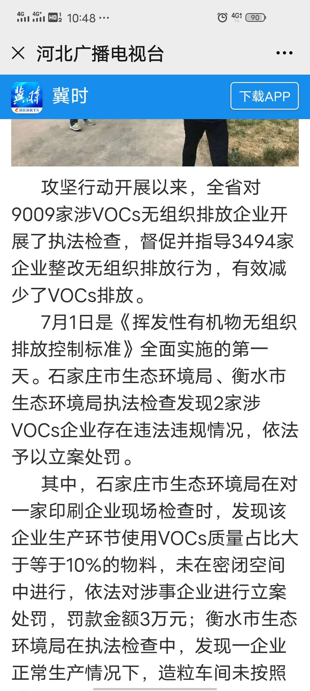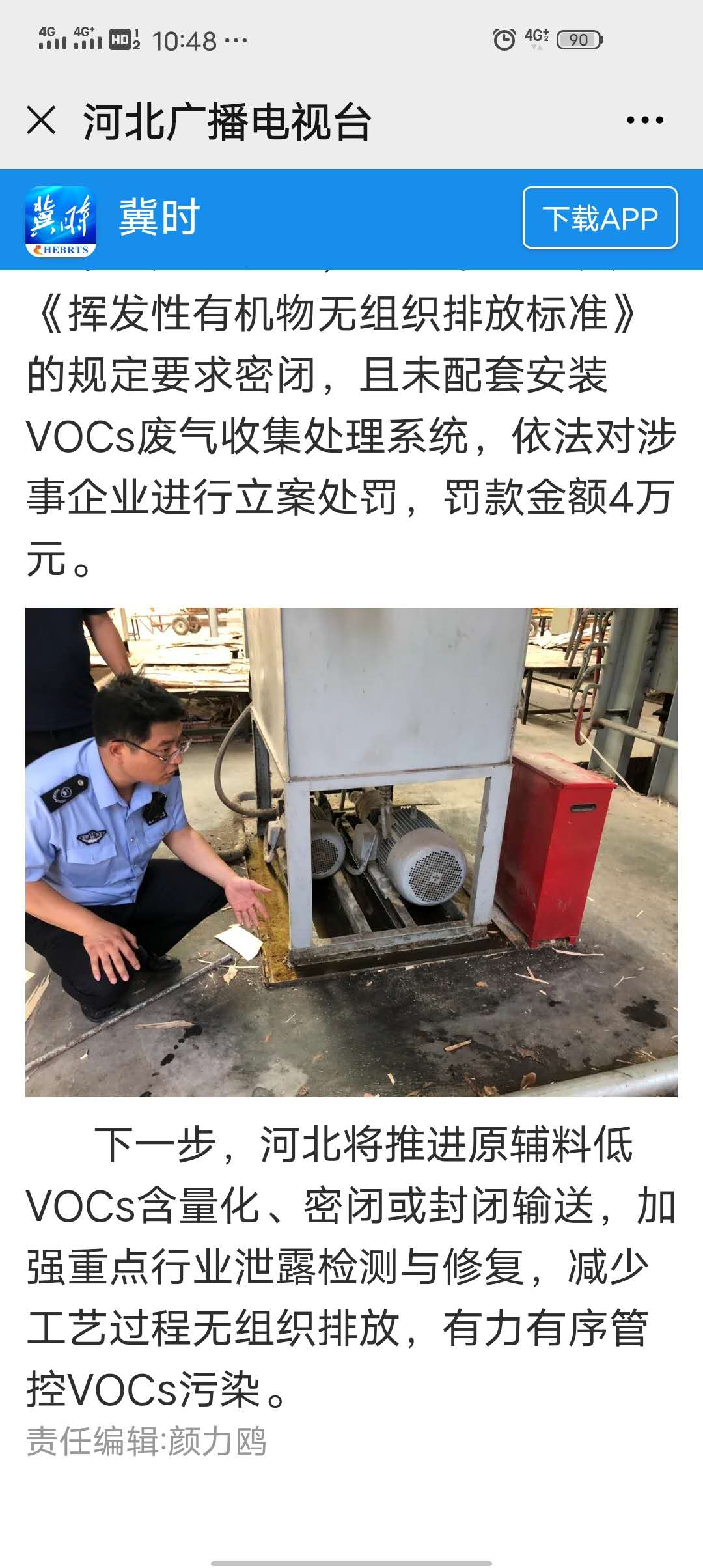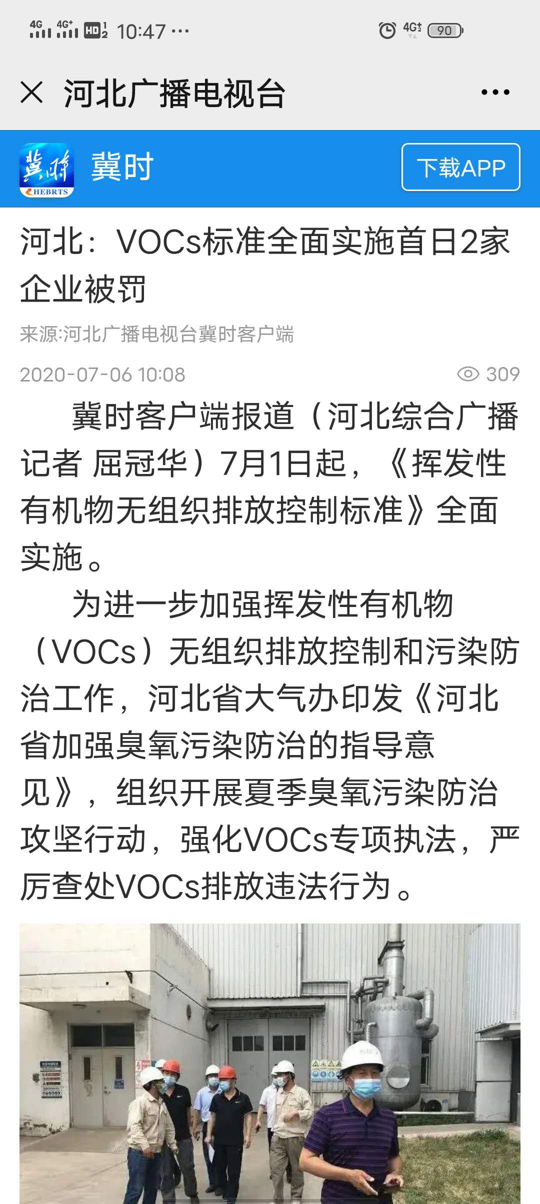 河北广播电视台冀时客户端:河北 VOCs标准全面实施首日2家企业被罚