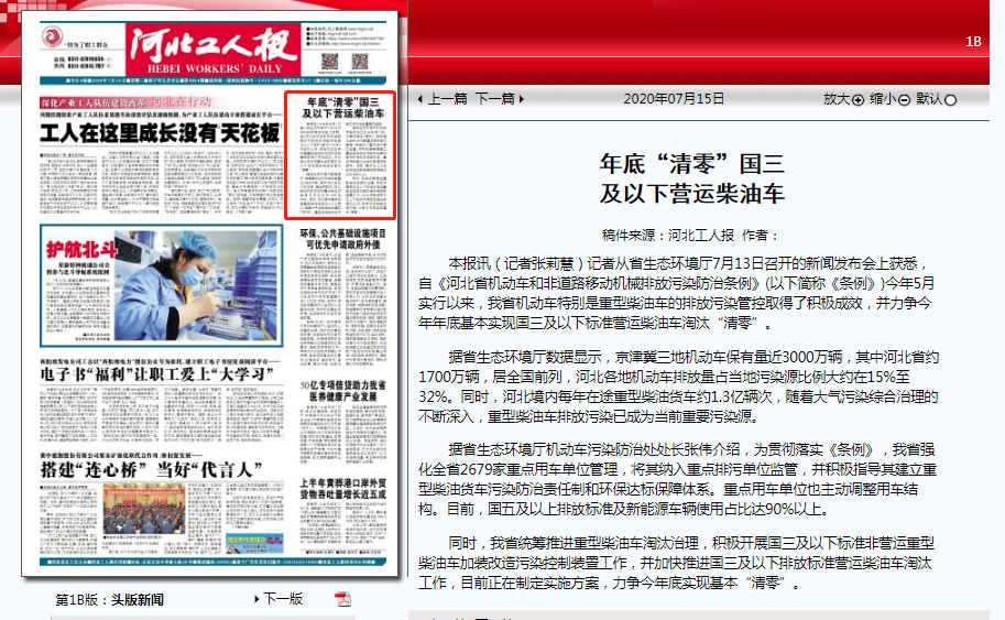 本报讯(记者张莉慧)记者从省91直播厅7月13日召开的新闻发布会上获悉,自《河北省机动车和非道路移动机械排放污染防治条例》(以下简称《条例》)今年5月实行以来,我省机动车特别是重型柴油车的排放污染管控取得了积极成效,并力争今年年底基本实现国三及以下标准营运柴油车淘汰“清零”。