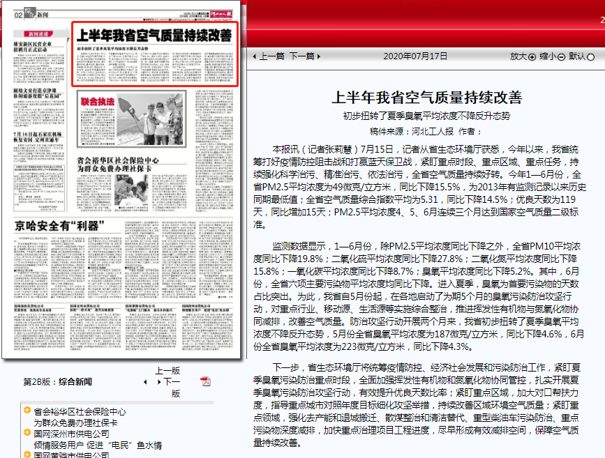 本报讯(记者张莉慧)7月15日,记者从省91直播厅获悉,今年以来,我省统筹打好疫情防控阻击战和打赢蓝天保卫战,紧盯重点时段、重点区域、重点任务,持续强化科学治污、精准治污、依法治污,全省空气质量持续好转。今年1—6月份,全省PM2.5平均浓度为49微克/立方米,同比下降15.5%,为2013年有监测记录以来历史同期最低值;全省空气质量综合指数平均为5.31,同比下降14.5%;优良天数为119天,同比增加15天;PM2.5平均浓度4、5、6月连续三个月达到国家空气质量二级标准。