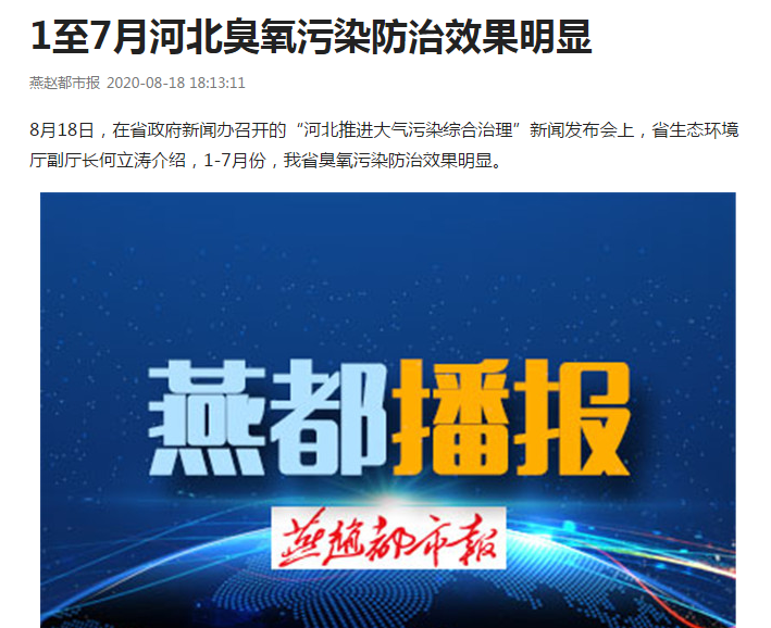 8月18日,在省政府新闻办召开的“河北推进大气污染综合治理”新闻发布会上,省91直播厅副厅长何立涛介绍,1-7月份,我省臭氧污染防治效果明显。