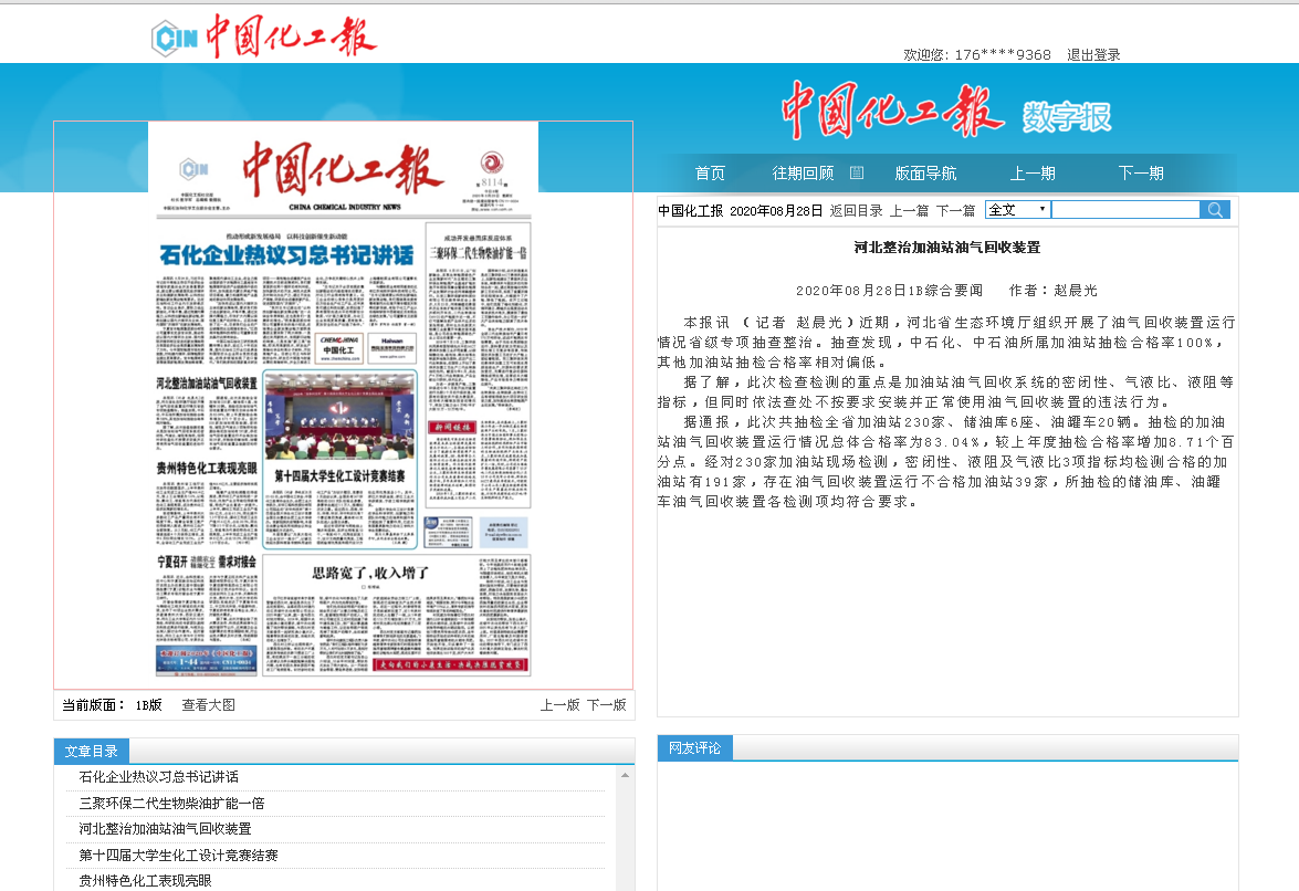 中国化工报:河北整治加油站油气回收装置