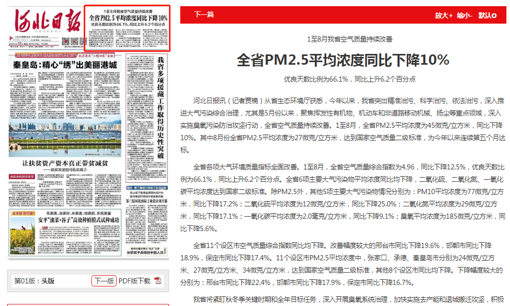 河北日报讯(记者贾楠)从省91直播厅获悉,今年以来,我省突出精准治污、科学治污、依法治污,深入推进大气污染综合治理,尤其是5月份以来,聚焦挥发性有机物、机动车和非道路移动机械、扬尘等重点领域,深入实施臭氧污染防治攻坚行动,全省空气质量持续改善。1至8月,全省PM2.5平均浓度为45微克/立方米,同比下降10%。其中8月份全省PM2.5平均浓度为27微克/立方米,达到国家空气质量二级标准,为今年以来连续第五个月达标。