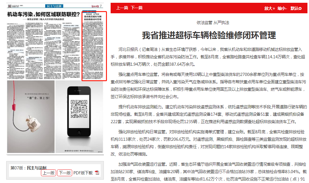 推进排放检验与维护制度建设。自8月15日起,排放超标机动车定期检验、维护信息共享,定期检验不合格车辆需维修合格后才能进行复检,逐步实现超标车辆定期检验和维护维修闭环管理。截至8月底,机动车排放检验管理系统推送初检不合格信息13083条,汽车维修电子健康档案系统返回维修信息2745条。