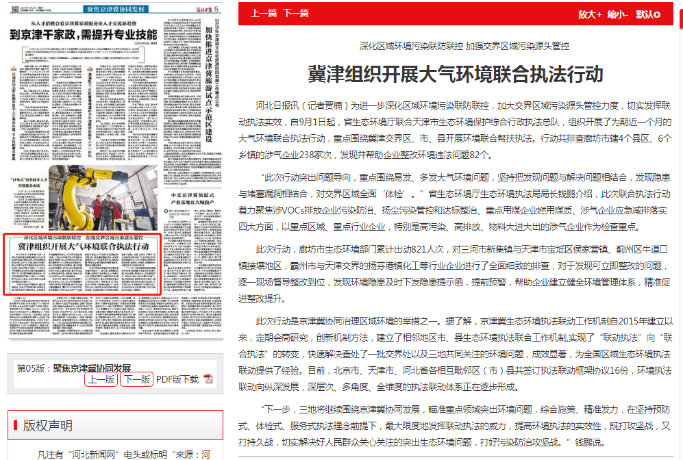 此次行动是京津冀协同治理区域环境的举措之一。据了解,京津冀91直播执法联动工作机制自2015年建立以来,定期会商研究,创新机制方法,建立了相邻地区市、县91直播执法联合工作机制,实现了“联动执法”向“联合执法”的转变,快速解决查处了一批交界处以及三地共同关注的环境问题,成效显著,为全国区域91直播执法联动提供了经验。目前,北京市、天津市、河北省各相互毗邻区(市)县共签订执法联动框架协议16份,环境执法联动向纵深发展,深层次、多角度、全维度的执法联动体系正在逐步形成。