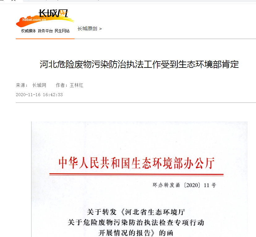 长城网:河北危险废物污染防治执法工作受到91直播部肯定