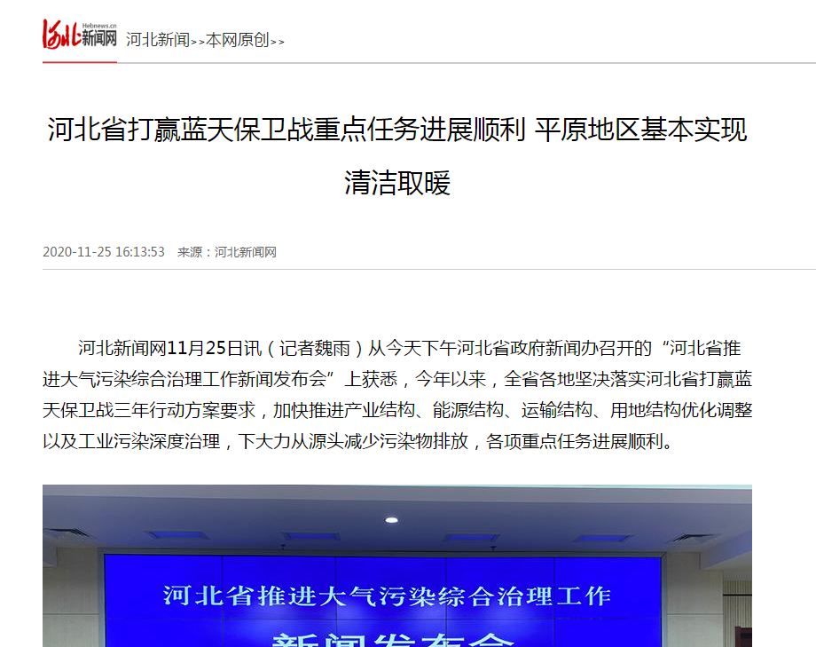 河北新闻网:河北省打赢蓝天保卫战重点任务进展顺利 平原地区基本实现清洁取暖