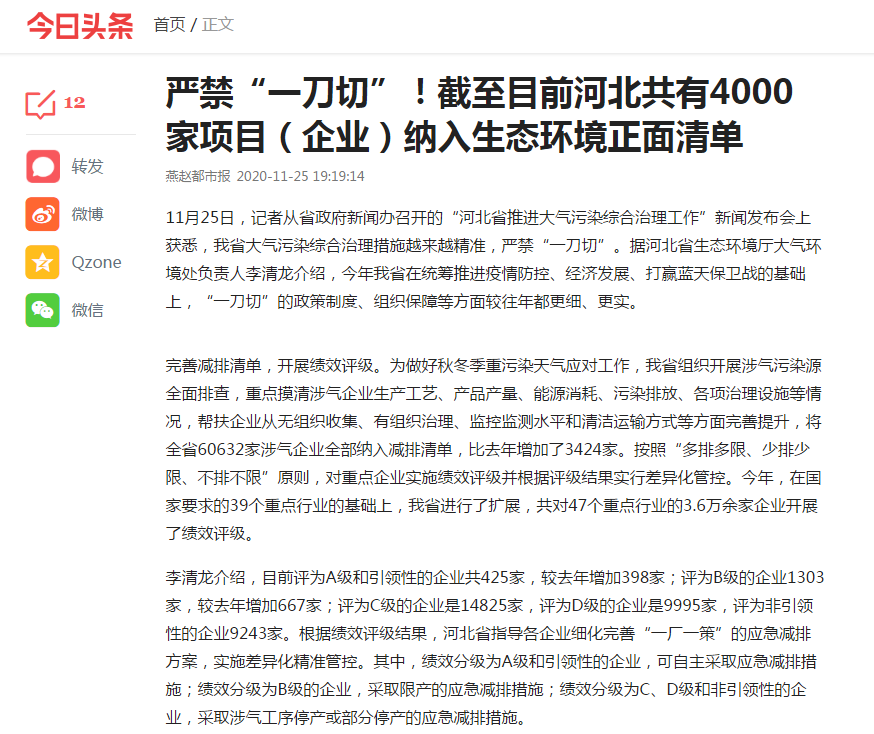 燕赵都市报:严禁“一刀切”!截至目前河北共有4000家项目(企业)纳入91直播正面清单