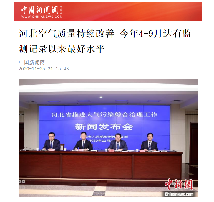 中国新闻网:河北空气质量持续改善 今年4-9月达有监测记录以来最好水平