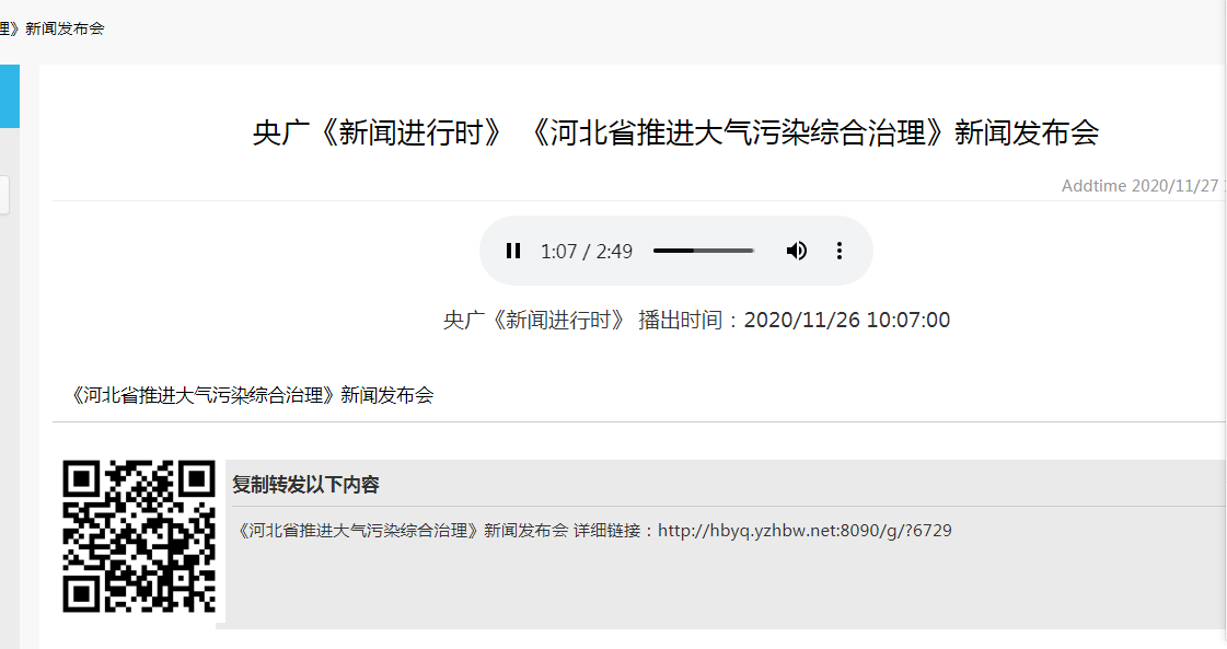 央广《新闻进行时》:《河北省推进大气污染综合治理》新闻发布会