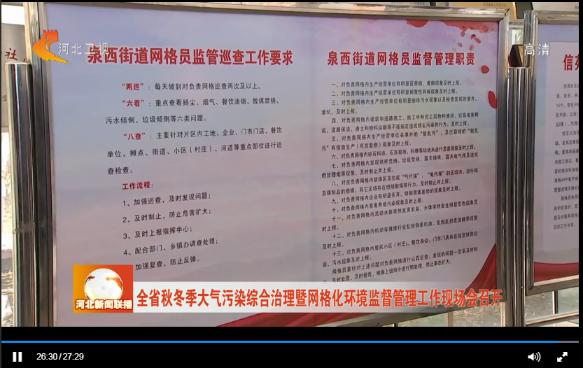 河北电视台《河北新闻联播》:全省秋冬季大气污染综合治理暨网格化环境监督管理工作现场会召开