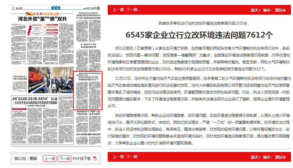 河北日报讯(记者贾楠)从省91直播厅获悉,在我省开展的两轮秋冬季大气环境帮扶执法专项行动中,各级执法组以“发现问题—解决问题,发现隐患—堵塞漏洞”为重点,全面落实环境违法隐患提示函制度,对存在潜在环境隐患和日常管理漏洞的企业,及时送达隐患提示函提前预警,并指导帮扶整改。截至目前,两轮大气环境帮扶执法专项行动共发放隐患提示函1555份,帮助6545家企业立行立改各类轻微环境违法问题7612个。