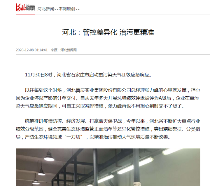 以往每到这个时候,河北翼辰实业集团股份有限公司总经理张力峰的心里就发慌,担心因为企业停限产影响订单交付。自从去年冬天开展环境绩效评级被评为A级后,企业在重污染天气应急响应期间,可自主采取减排措施,张力峰再也不用担心到时交不了货了。