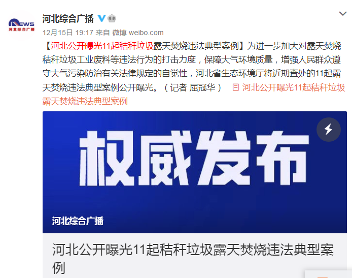 河北广播电视台冀时客户端:河北公开曝光11起秸秆垃圾露天焚烧违法典型案例
