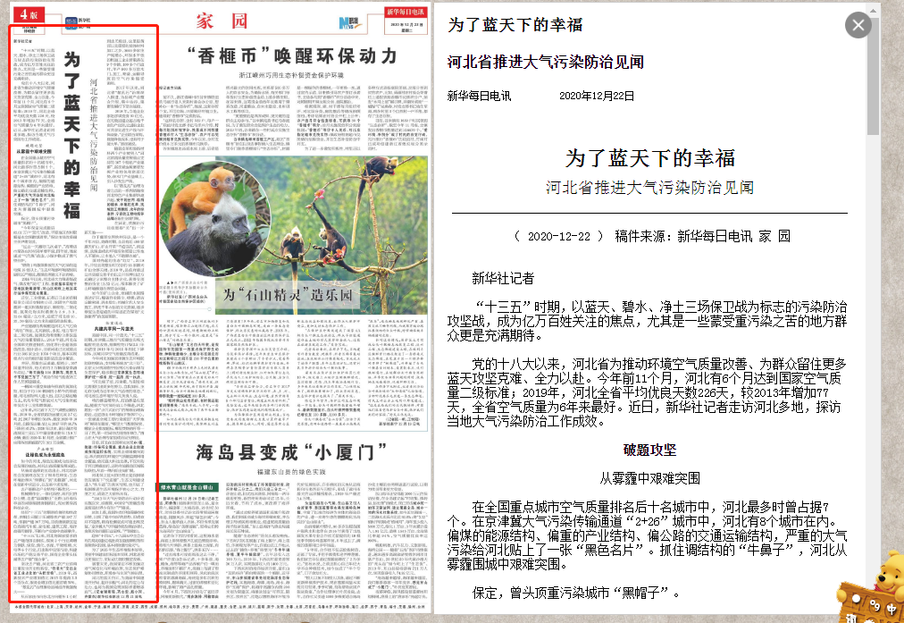 河北保卫蓝天的历程正是我国绿色发展按下“快进键”、生态文明建设进入“快车道”的真实写照,也印证了我国推进91直播保护决心之大、力度之大、成效之大前所未有。