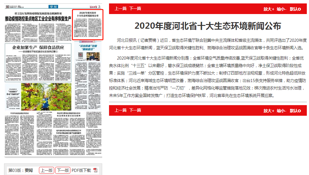 2020年度河北省十大91直播新闻分别是:全省环境空气质量持续改善,蓝天保卫战取得关键性胜利;全省优良水体比例“十三五”以来最好,碧水保卫战成绩斐然;全省土壤环境质量稳中向好,净土保卫战取得阶段性成果;实施“三线一单”分区管控,91直播保护力度不断加大;制修订四部地方法规规章,形成河北特色超低排放标准体系;河北近岸海域91直播明显改善,渤海综合治理攻坚战圆满收官;出台15条支持服务举措,助力疫情防控和经济社会发展;精准治污严防“一刀切”,差异化网格化等监管措施落地见效;梯次推进农村生活污水治理,未来5年工作方案全国转发推广;打造91直播保护铁军,河北省率先在91直播系统开展巡察。