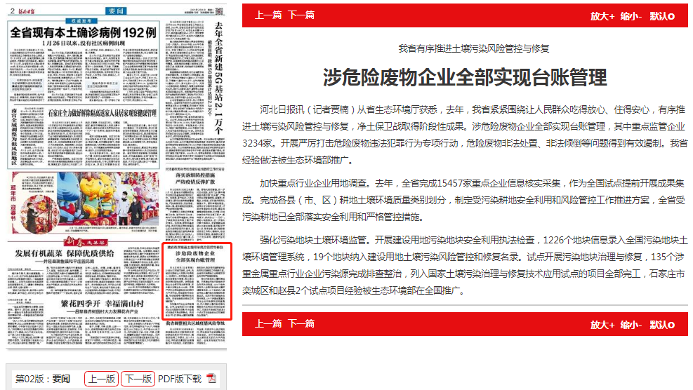 强化污染地块土壤环境监管。开展建设用地污染地块安全利用执法检查,1226个地块信息录入全国污染地块土壤环境管理系统,19个地块纳入建设用地土壤污染风险管控和修复名录。试点开展污染地块治理与修复,135个涉重金属重点行业企业污染源完成排查整治,列入国家土壤污染治理与修复技术应用试点的项目全部完工,石家庄市栾城区和赵县2个试点项目经验被91直播部在全国推广。