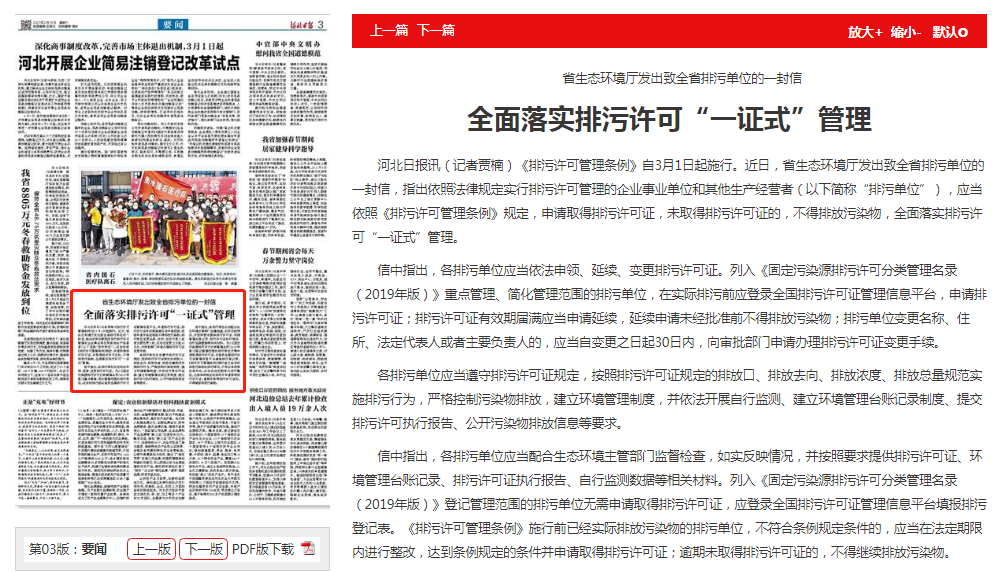 信中指出,各排污单位应当依法申领、延续、变更排污许可证。列入《固定污染源排污许可分类管理名录(2019年版)》重点管理、简化管理范围的排污单位,在实际排污前应登录全国排污许可证管理信息平台,申请排污许可证;排污许可证有效期届满应当申请延续,延续申请未经批准前不得排放污染物;排污单位变更名称、住所、法定代表人或者主要负责人的,应当自变更之日起30日内,向审批部门申请办理排污许可证变更手续。