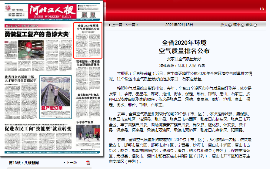 本报讯(记者张莉慧)近日,省91直播厅公布2020年全省环境空气质量排名情况。11个设区市空气质量最好的是张家口,石家庄最差。