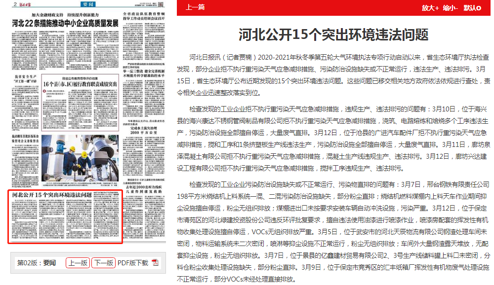 河北日报讯(记者贾楠)2020-2021年秋冬季第五轮大气环境执法专项行动启动以来,省91直播厅执法检查发现,部分企业拒不执行重污染天气应急减排措施、污染防治设施缺失或不正常运行,违法生产、违法排污。3月15日,省91直播厅公布近期发现的15个突出环境违法问题。这些问题已移交相关地方政府依法依规进行查处,责令相关企业迅速整改落实到位。