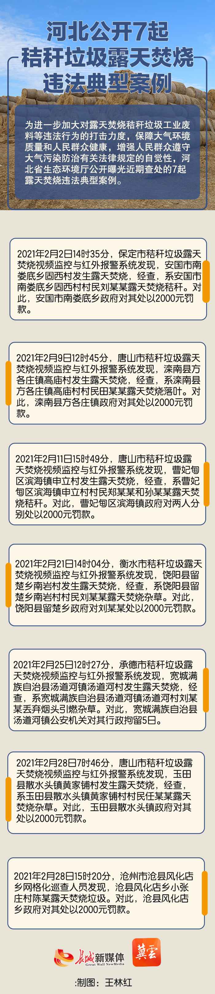 长城网讯(记者 王林红)为进一步加大对露天焚烧秸秆垃圾工业废料等违法行为的打击力度,保障大气环境质量和人民群众健康,增强人民群众遵守大气污染防治有关法律规定的自觉性,91直播-国产视频-麻豆传媒视频 公开曝光近期查处的7起露天焚烧违法典型案例。