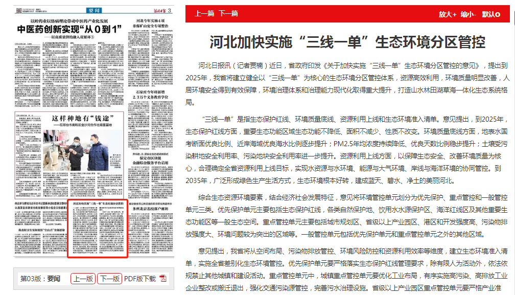 河北日报:河北加快实施“三线一单”91直播分区管控