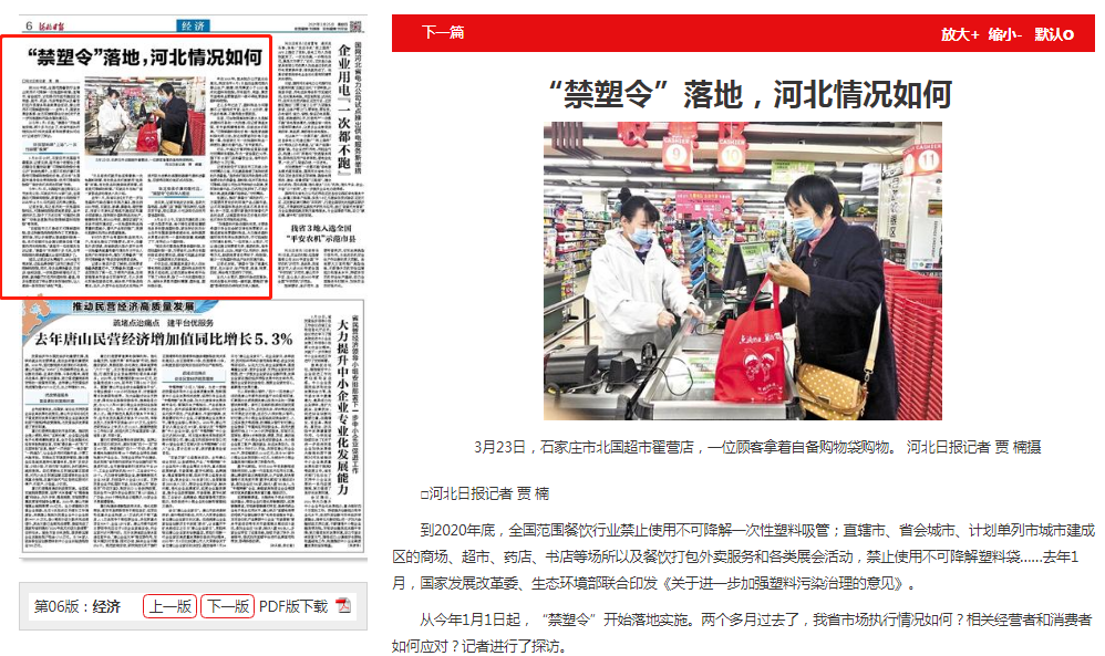 去年7月,我省印发《关于进一步加强塑料污染治理的实施方案》,提出到2020年底,石家庄、承德、秦皇岛、雄安新区、张家口市崇礼区等城市建成区和重点领域禁止、限制部分塑料制品的生产、销售和使用。到2022年底,禁限区域扩大至各市城市建成区,一次性塑料制品消费量明显减少,替代产品有效推广,资源化能源化利用比例显著提高。